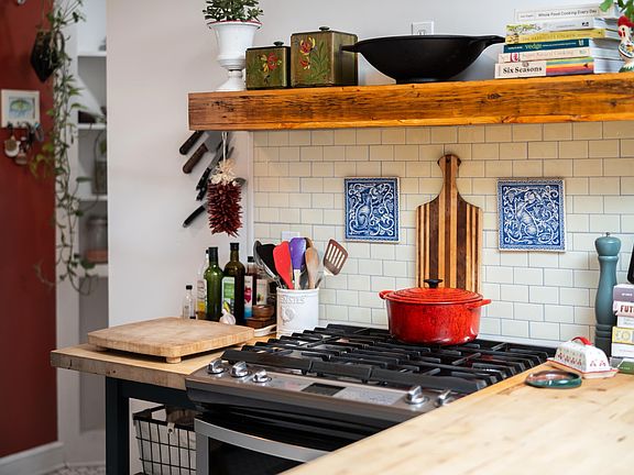Story Book Cape Cod! Timeless charm meets modern convenience in this beautifully updated home nestled in Staunton's Desirable North End! Original character with stylishly functional renovations. You’ll be captivated by the warmth and character of this home. The heart of the house is the delightful kitchen, which has been tastefully upgraded. Gas cook stove, water purification system at farmhouse kitchen sink, exquisite tile floors, stainless steel appliances, and butcher block counters-a culinary haven for both budding chefs and seasoned cooks. Fully fenced lawn is an oasis! Mature lilac & magnolia trees-perfect for al fresco dining or relaxation on the screened-in porch. Meticulously maintained gardens in both the front and back lawns with raised vegetable beds. Home includes a carport too! Numerous comfort and energy efficiency enhancing upgrades-2018 new heating system installed & new upstairs heating/cooling mini-split system added! New light fixtures throughout, tons of natural light and much of the home has new windows! A recently professionally installed cozy wood stove in living room & ample storage space in basement & shed. A chance to own a NORTH END GEM!!