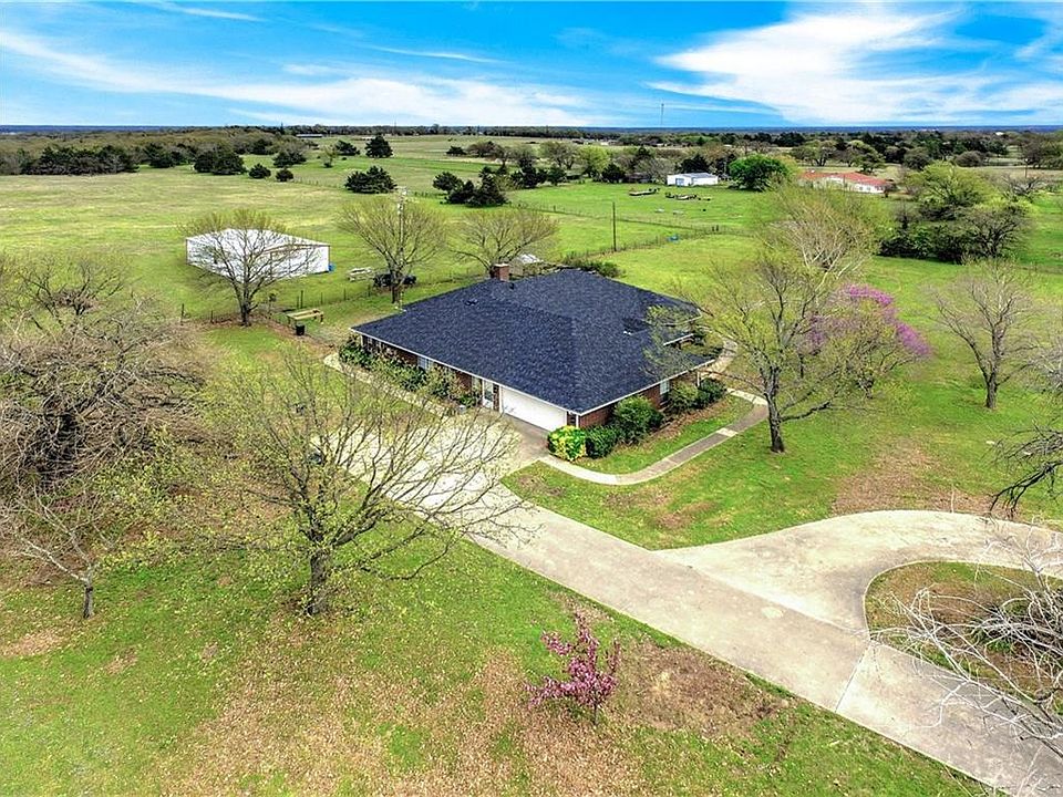COUNTRY LIVING AT IT'S FINEST! Be impressed with this beautiful home located in Bells School District on 14+ acres! Orchard harvested with pear, peach and apple! The Crepe Myrtles and mature trees add to the serenity of this property. The house is brick and offers 4 bedrooms, 2 bathrooms, 2 car garage, travertine floors and an extra living space that can be used as an office, etc. Walk outside to a spray-foam insulated 30x50ft SHOP with electricity! The land comes with gorgeous trees, fencing, Spring-Fed POND, RV Hookups, and gas hookups on patio! Have you dreamed of living in the country with convenience to larger cities? This home is located within 10 minutes of both Denison and Bells, TX!