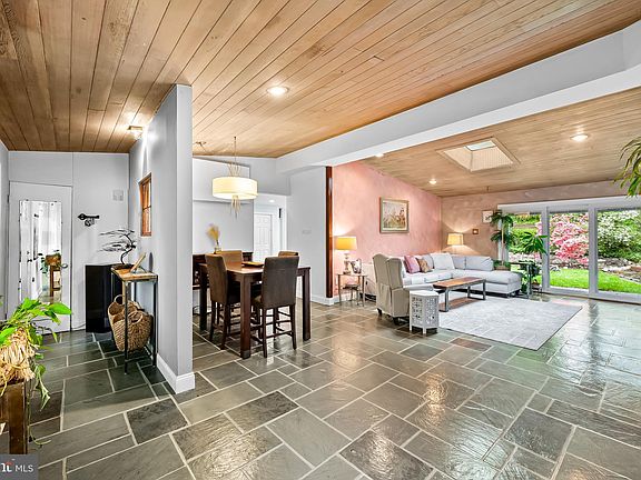 Dreaming of living in Dulaney Forest? It is one of Lutherville Timonium's best kept secrets. 219 Gateswood has been updated, expanded, and improved in the last few years, creating a perfect blend of mid-century modern flair and 21st Century amenities. The original slate floor has been retained in the foyer, living room, dining room, and kitchen. Vaulted ceilings and a raised fireplace, complete with wood stove insert, add to the charm. The sunlight-filled, updated kitchen will wow you with it's Quartz counters, tons of cabinet space, walk-in pantry, and breakfast bar island complete with a vintage wood block countertop. Stand at the kitchen sink and gaze at the Azaleas blooming and listen to your own waterfall. Gather around the patio table while others play soccer in the yard. Back in the kitchen, you'll love the banquette for eating most meals. Off the kitchen is the laundry room with extra storage. Down the hall, find two of the three bedrooms and an updated hall bath. The primary suite has been expanded with an addition adding a walk-in closet that doubles as a yoga room, meditation room, or reading nook. It's so pretty that you'll want to spend hours in there. The expanded primary bath now has two sinks and the addition also contains a secluded home office for working from home. I forgot to mention the huge family room off the living room and the storage and exercise room. Outside, spend hours working in the enlarged shed or let the little ones explore the playhouse. Get on the waiting list for the Dulaney Swim Club, just two blocks away. Come fall in love with Dulaney Forest just like we have.