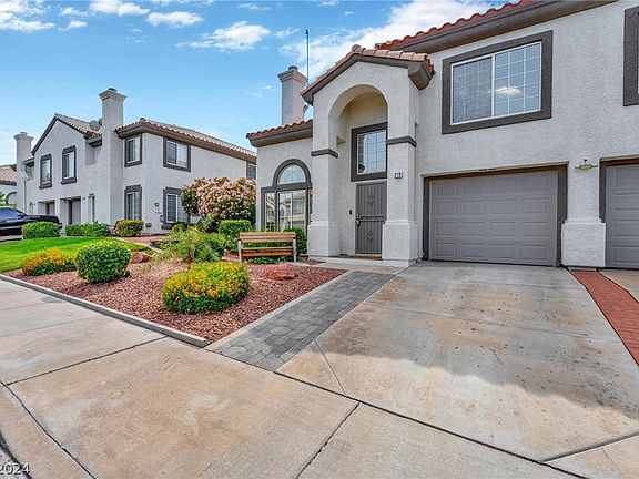 Nestled in the heart of Henderson, this stylish 2 bedroom, 2 bathroom condo offers a perfect blend of modern convenience and cozy comfort. Upon entering, you're greeted by vaulted ceilings and an open-concept living space, illuminated by natural light streaming through large windows. The contemporary kitchen boasts stainless steel appliances, sleek countertops, and new ample soft close cabinets, making it a chef's delight. The master suite provides a serene oasis, featuring a spacious bedroom, a big closet, and an ensuite bathroom with luxurious fixtures. The second bedroom is equally inviting, ideal for guests or a home office. Step outside onto your private covered patio, where you can unwind with a cup of coffee in the morning or entertain guests in the evening. With the added convenience of a one-car garage, parking is a breeze, offering both security and protection from the elements.