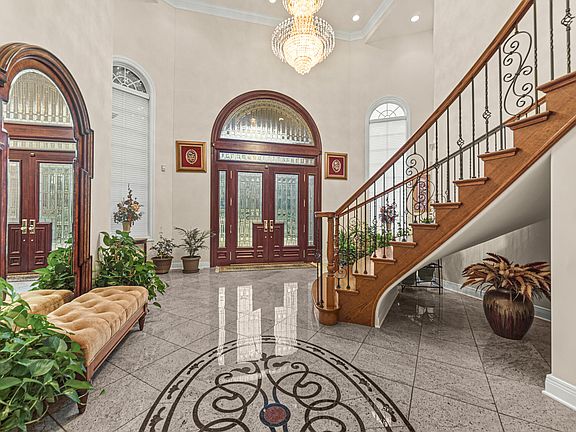 Limited viewing hours! Welcome to this stunning 7-bedroom, 7-bathroom luxury estate spanning nearly 8000 sq. feet in a prestigious gated community! From the moment you step through the ornate custom wood front door, you're greeted by a spacious foyer and soaring ceilings that set the tone for elegance and grandeur. Every inch of this home is designed for luxury and comfort. On the main floor is a gourmet eat-in kitchen and a formal dining area for gatherings. A home office is ideal for remote working and a cozy guest suite for visitors. 2 staircases take you to the second level with 5 generous bedrooms with private bathrooms and walk-in closets.Venture downstairs to the walk-out basement and enjoy the entertaining area with a full bar, theater room, gym and an additional bedroom.Located on an expansive lot with beautiful views, this home will have you at hello! Brand new furnaces and a/c's within the last month have been installed for the new homeowners.
