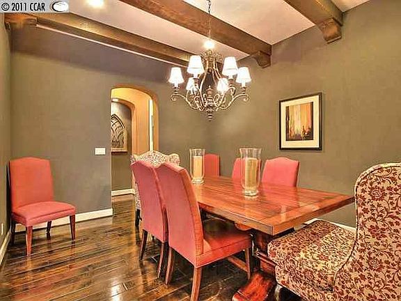 Gorgeous single story home. Open kitchen and great room. Dark espresso cabinets and hardwood flooring throughout. Kitchen with slab granite, SS appliances, tumbled marble. Custom beam ceilings. Private courtyard with fireplace. Professionally landscaped yards. Huge play area and patios