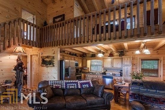 If this stunning mountain home doesnt take your breath away the view certainly will! Spectacular view and rental history on this 3 bedroom, 2.5 bath cabin. Superbly maintained featuring hot tub on covered porch to soak in all the mountains have to offer. Soaring greatroom with woodburning fireplace, open kitchen with upgrades. Excellent floorplan with 2 bedrooms on main level and easy traffic flow for entertaining. Upper level master features another covered deck with mountain view and private bath. Spacious parking with circular driveway. Negotiable for turn key rental.