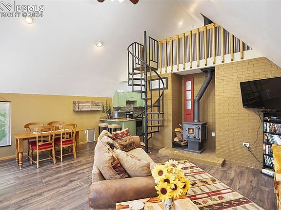 Escape to your mountain sanctuary in this beautifully renovated A-frame cabin, located just north of Divide, Colorado. This charming 864 sq. ft. home features 2 bedrooms (1 nonconforming) and 1 bathroom, offering a perfect blend of rustic mountain charm and modern comfort. Despite its secluded feel, it's conveniently close to town, making dining out a breeze. Tucked away in a quiet cul-de-sac, this turnkey furnished cabin showcases high ceilings and a tastefully updated kitchen and bathroom with granite countertops and a sleek stand-up river rock tile shower. The main-level bedroom ensures easy access and comfort, while a spiral staircase leads to a cozy loft. This versatile space can serve as a second bedroom, office, or workout area, adaptable to your needs. Experience nature at its best, with regular sightings of mule deer and even elk on your driveway. Enjoy nearby stocked fishing ponds, perfect for a peaceful afternoon by the water. The property has been recently mitigated, offering the convenience of 3-4 parking spaces. Cozy up next to the England wood-burning stove with a cup of hot chocolate on snowy evenings, and take advantage of the area's abundant year-round recreational activities. Don’t miss the chance to own this idyllic retreat—call today to schedule your exclusive showing! Property sold as-is.