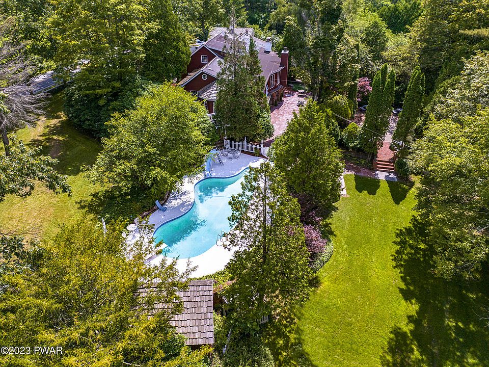 This cape cod sprawling 6-bedroom country estate, constructed by the builder/owner for his large family is located in the heart of the Pocono Mountains near golfing, skiing, lakes, etc. The lush 8-acre estate features a in-ground swimming pool, cabana, gazebo, shuffleboard, & a multi-purpose outdoor surface, ready to transform into activities like pickleball, basketball, tennis, or event tenting. Private woods with mature trees are ideal for hiking & hunting, and the grassy yard features fruit trees, and plenty of open space. Upper terrace includes outdoor kitchen for Alfresco dining. Lower terrace with outdoor bar has more space for dancing, entertaining & events. The estate has hosted reunions, weddings, receptions, and parties. All this & No HOA fees. Short term rental friendly estate, Beds Description: 2+BedL, Beds Description: 2+Bed1st, Beds Description: 2+BED 2nd, Baths Y, Baths: 1 Bath Level 3, Baths: 2 Bath Lev 1, Eating Area: Formal DN Room, Eating Area: Semi-Modern KT, Baths: 2 Bath Lev 2