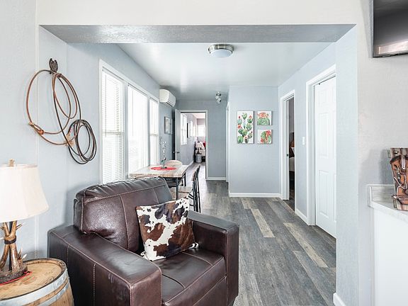 This property underwent a complete renovation just a year ago, featuring new floors, cabinets, and fixtures. It is fully furnished and decorated in a delightful rodeo theme as a vacation rental. Enjoy a private, fenced-in front yard complete with a patio and outdoor furniture. We welcome well-behaved dogs, making it a pet-friendly option. This home offers flexible rental options monthly and weekly ideal for traveling business professionals, families in the process of buying a new home, or anyone seeking an extended getaway.