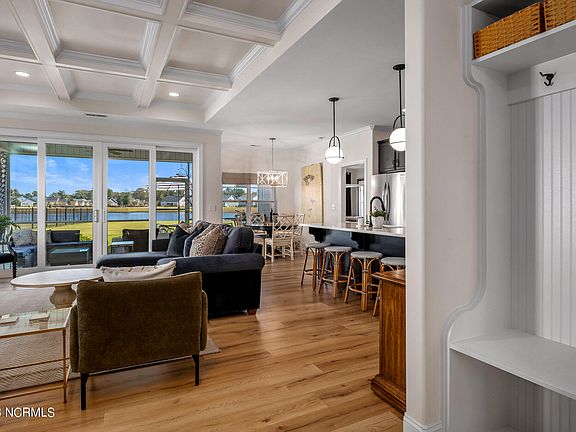 One of the standout features of this property is its lakefront setting. Step outside and you're greeted with a screened in porch complete with tile flooring, leading out to a newly done paved patio; perfect for your fire pit and a beautifully landscaped backyard. Other key features include, a two-car garage with a widened driveway, tankless water heater, and a whole-home water filtration system. Hanover Lakes offers amenities such as an outdoor lap pool with a slide, dog park, gazebo and fire pit area. Sellers are offering $5000.00 towards a rate buy-down or closing costs! Enjoy Coastal NC today