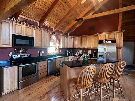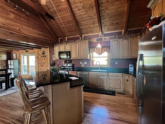 Stunning 3,800SF log home. Modern kitchen and baths. Lots of natural light and countryside views. 17 Minutes from Harper Rd, Beckley WV. Includes a 2 car attached garage, 2 vehicle car port, 14x30 log sided building, 28 ft above ground pool with deck, playground, & outdoor furnace.