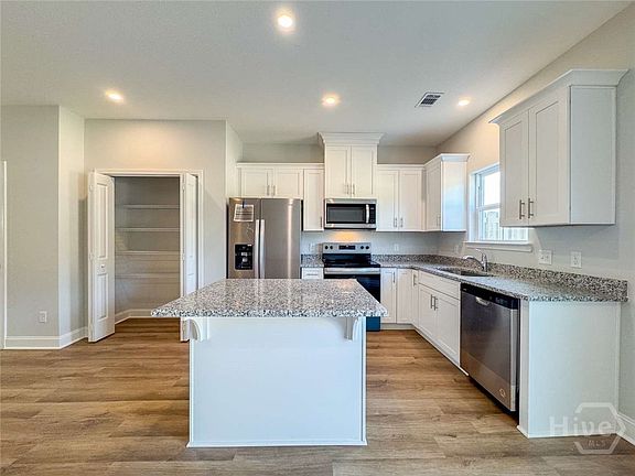 Introducing the Heritage Pointe townhomes in Hinesville! Located on the edge of Hinesville close to new restaurants & upand-coming shopping! Quick commute to Ft. Stewart, Hwy 17 & I-95! 3-bedroom, 2.5-bath townhome with granite counters throughout! Open living space on the first floor with access to the 1-car garage, as well as the fenced backyard. The kitchen features white cabinetry with granite counters & stainless appliances! From the island look out to the dining area & family room. Enjoy a sodded backyard with irrigation from the patio! Upstairs find two bedrooms, hall bath, laundry room & the primary suite. Within the primary suite is a ceiling fan, walk-in closet & private bath. The private bath includes a dual vanity with granite counter, shower & another walk-in closet! Estimated completion June 2025.