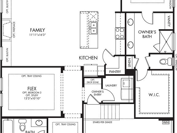 This home features an oversized master bedroom with a tub and shower. White cabinets in the kitchen add to the light and bright feel of the Candler floorplan. The wooden staircase transitions seamlessly into the space third floor.