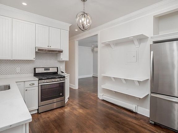 Luxury and convenience in historic Fort Hill. This HUGE 3BD/2BTH townhouse style condo is a rare find. Get 1 dedicated off-street parking space and be within ~5 minute walking distance to the Jackson Sq. T & just 1.5 miles to Longwood. This 3-unit condo building sits on a large 9,800 SF lot, and is perfect for entertaining with a common roof deck & 1/2 bath in the garden level for guests! The photos do not do it justice, you need to see this for yourself. This renovated condo has a new kitchen, with SS appliances and quartz countertops, which opens up to a spacious living room complete with additional storage/coat closets. The attention to finish has not been overlooked in this condo as it includes crown moulding and colonial revival picture rail. The master bedroom is spacious and all bathrooms have a full size tub shower with tile surrounds and a recessed shower shelf. The living room and both 1st floor bedrooms have brand new ceiling fans and unit includes a full size new W&D