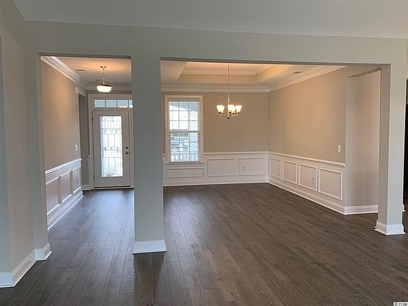 This Reynolds-TRL is Belle Mer's Best-Selling floor plan. This Reynolds includes 3 bedrooms, 2.5 baths, and open concept design, a 32ft screened porch, and a lovely lake view. The spacious kitchen, open to the Great room, features 3 Progress Lighting pendants over the Island, crisp white staggered height Level 3 cabinets with crown molding, a glass mullion, roll out shelves, a Lazy Susan, and a waste basket drawer, Whirlpool stainless steel kitchen appliances (over-the-range microwave vented to the exterior, dishwasher, natural gas range, and French style refrigerator), Level 3 Tile Back splash, and under cabinet lighting. Level 3 Golden Gate Quartz Kitchen counter tops provide a lovely accompaniment to the Fresh Bark Mohawk REV Wood flooring throughout the living area and all bedrooms. All baths and the laundry room feature 12x12 Daltile tile flooring, the Primary bath boasts a spa walk-in shower with 12x12 tile walls and 2x2 flooring inside the shower. The entry into this personalized Reynolds boasts a gorgeous decorative glass front door, a transom window over the front door, and a side light. More included features: 2 sinks and 2 cabinets in Bath 2, ceiling fans on the screen porch, a vaulted ceiling in the Great room, Bay Window and Tray Ceiling in the Primary Bedroom, Attic Storage over the garage with pull-down stairs, a Tray Ceiling in the Dining room, Designer Trim Package (5.25 baseboards, and 3.25 door/window casing), 2 pieces of crown molding in the Foyer and Dining room, Chair rail and Picture Molding in the Foyer and Dining room, an incredible 4 panel slider in the Great room, Moen Plumbing fixtures, a fully sodded home site with foundation trees and shrubs, and an Energy Star Certified home. Belle Mer offers amenities galore: sidewalks, Colonial reproduction street lamps, weekly curbside trash collection, a pool, clubhouse, exercise room, and fishing lakes that allow non-motorized boating. A premier location between Murrells Inlet and Myrtle Beach, just 3 miles to the public beach accesses in Surfside Beach, and across the street from 2 large shopping and dining venues.