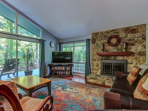 Come home to Gatlinburg's highly desirable Hidden Hills neighborhood in this lovingly updated classic designed by renowned architect Hubert Bebb. The split foyer entry leads you to the spacious living room with cathedral ceilings, a stone fireplace, and expanses of windows bringing the wooded setting indoors. A generous breakfast bar draws you into the fully-updated kitchen with white flat-panel cabinets, granite tops, and stainless appliances. A gorgeous sunroom/dining room also adjoins, with panoramic windows and twin skylights continuing the ''bring the outdoors indoors'' theme. Down the sizable front passage (another Bebb hallmark) you enter the main bedroom, with electric fireplace and a cedar-lined walk-in closet. A glass block wall separates it from a full bath with custom tile tub-shower and twin vanities, shared Jack-&-Jill style with the rest of the main level. The second bedroom rounds out the main level. The lower level is currently set up as a private suite with another stone fireplace, a full bath, and outside access via patio door. There is also a laundry room along with storage and mechanical rooms on this level. The home sits on two lots totaling 3/4 acre of natural beauty, with a back deck and firepit area enjoying a hillside covered with mountain laurel and rhododendron, a side deck nestled in mature hardwood trees, a front lawn surrounded by the woods, and a custom storage shed for additional storage. There is a sprawling paved parking area and private drive to the street, where you are only 10 minutes from downtown Gatlinburg. There are numerous upgrades that include a whole-house generator to make power outage worries a thing of the past. Bebb-designed homes are especially coveted in this area due to his considerable work with the National Park, and this is a great example of his style - schedule a private showing today and find your home in the Smokies! (Home is not visible from the road, please do NOT go up the driveway)
