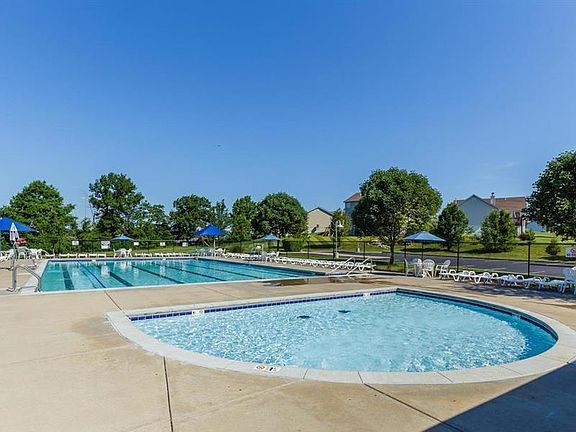 Charming 2 story townhome with spacious living room that opens to the breakfast room & kitchen. Beautiful tile floor in kitchen & breakfast room. Kitchen offers oak cabinets, subway tile backsplash, gas stove, pantry. Main floor laundry. Convenient main level powder room w/ pedestal sink, tile floor & subway tile half way up the walls. Upper level features a large master bedroom with walk-in closet & incredible designer bath with whirlpool tub, separate shower, & natural stone tile on floor and walls. Bedroom 2 has double closet and an amazing bath with tile floor, tile tub surround and tile extended half way up the walls. Exceptional tile work throughout the home, usually found in homes in considerably higher price ranges! Level yard backing to open area. Enjoy neighborhood pool, clubhouse, walking trails, baseball & soccer fields!