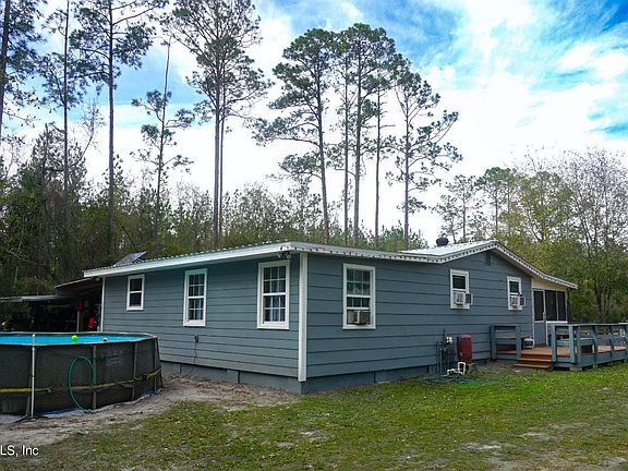 THIS HOME QUALIFIES FOR $7700 DOWN PAYMENT OR CLOSING COST, IF YOU USE MY PREFERED LENDER HELMUT CALDERON. Seller Offer a Temporary Buydown 2-1 ( -2% first year, -1% second year) OR Closing Cost Concession. Discover serenity in this charming 4-bedroom, 2-bathroom country home nestled on a spacious 0.83-acre retreat, featuring expansive wooded areas and complete fencing for added privacy. Boasting two barns, a chicken coop, and two sheds, this property offers versatility and extra space for outdoor activities. Enjoy an above-ground pool and multiple covered parkings, all within a tranquil natural setting. Strategically located near the Palatka paper mill and the airport, this residence provides convenience and easy access to essential local amenities.