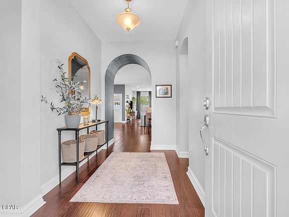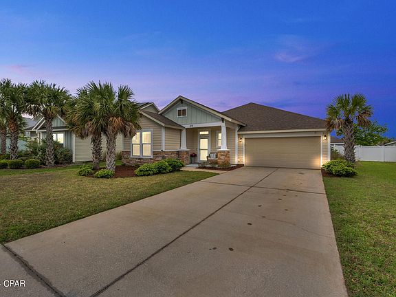 CURRENTLY UNDER CONTRACT, SELLER WILL CONSIDER BACKUP OFFERS Welcome to Breakfast Point! A beautiful community conveniently located just off PCB Parkway. Showcasing parks, playgrounds, and green space throughout; Community walking trail leading to Breakfast Point Academy for safe/easy access walking to school and newly completed boardwalk to Arnold High School and Gayle's Trail. This stunning home is beauty at its finest! Inside you will find tall ceilings, beautifully arched hallways, and engineered hardwood flooring throughout all common areas. Situated off a spacious entryway sits two secondary bedrooms and full bathroom featuring granite countertops and a tub/shower combo; laundry room and built-in mud room coat/shoe rack off the garage. Large open concept kitchen/dining and living room showcases a formal dining area with built-in desk; Kitchen featuring a large island, breakfast bar, granite countertops, tile backsplash, recessed lighting, stainless steel appliances, gas stove, and pantry. Master bedroom and en-suite are located off of the living room featuring bay windows, double vanities, granite countertops, walk-in closet, and large tiled walk-in shower. Exterior offers an oversized driveway, covered front porch, fenced backyard, covered back patio, and sits adjacent to the playground. With a new gas water heater (April 24'), new duct work and HVAC UV lighting (within 2 years); This home is move in ready!