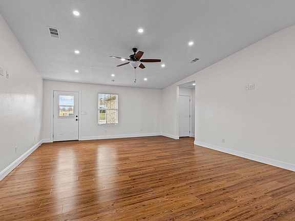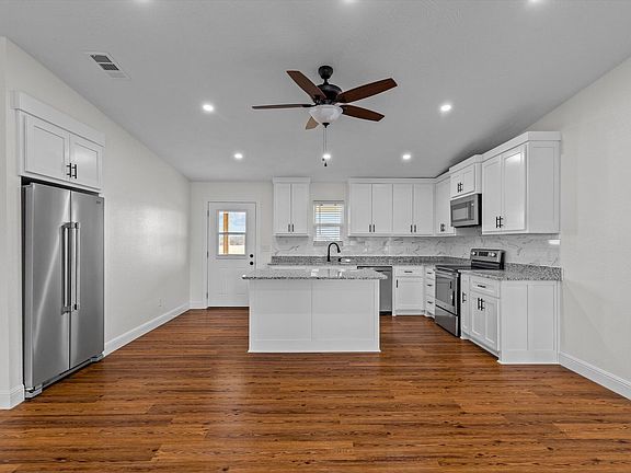 This stunning Brand New home features a charming brick front, offering great curb appeal. Inside, you'll find 3 bedrooms and 2 bathrooms, including a master bathroom with a tile shower, two walk-in closets, and two sinks for added convenience. The kitchen is a chef's delight with granite countertops, custom cabinets, and stainless steel appliances, including a refrigerator that stays with the home. The covered deck provides a perfect spot to enjoy the beautiful backyard views as this backyard backs up to a field with plenty of privacy! Don't miss out on this incredible opportunity to own a home with all these fantastic features!