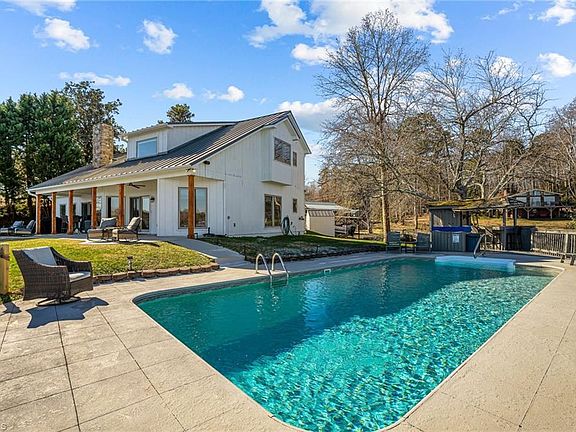 Welcome to this stunning lakefront retreat, where every window frames a breathtaking panoramic view of High Rock Lake. This home offers over 300 feet of waterfront, a swimming pool, two piers, and a boat ramp! Enjoy the convenience of the primary bedroom on the main floor while having an additional bedroom upstairs as well as two other BONUS ROOMS! You won't have to do any updating as this home features an updated kitchen, a metal roof installed in 2020, a new pool liner in 2023, and a new dock in 2021!! With ample space, you will have plenty of room to host events and have guests over OR use the property as short-term rental income. Whether you're enjoying a peaceful morning sunrise, an afternoon of watersports, or evening sunsets reflecting on the lake, this property provides the ultimate setting for relaxation and recreation. Don't miss the chance to experience the serene beauty of lakefront living!