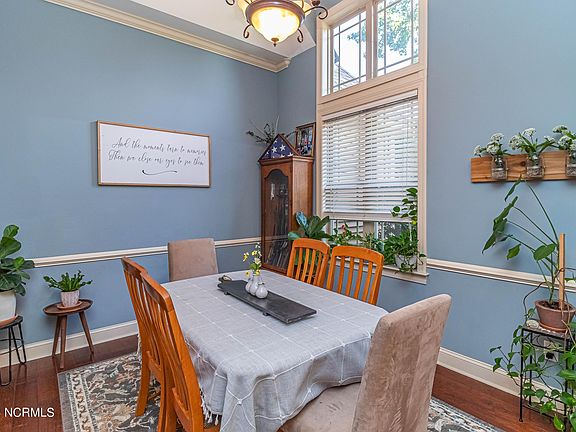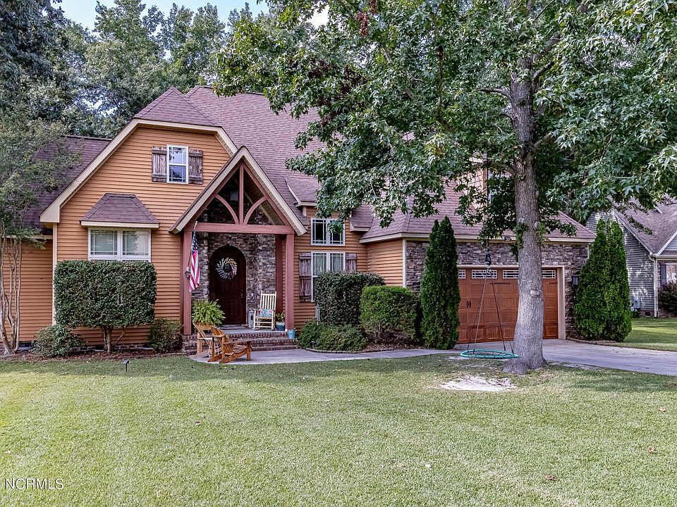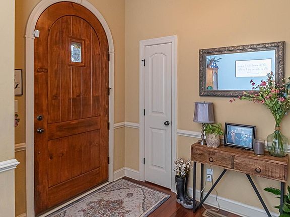 Upstairs, a generous bonus room with a full bath awaits, alongside a convenient walk-in attic for extra storage. The exterior impresses with a large, covered rear porch, a fenced yard, and a firepit area perfect for gathering. Beyond the fence, a tranquil creek bed invites wildlife, including deer and waterfowl, adding a touch of nature's serenity to your outdoor experience.