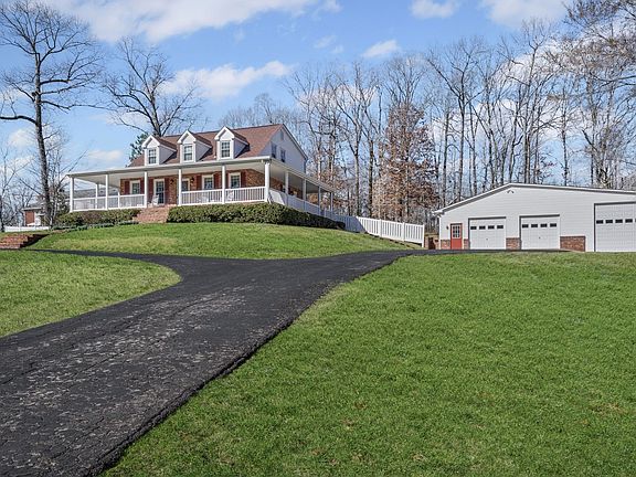 READ THE DETAIL SHEET from Seller scanned into documents. This 2 acre site is one of the finest in Dickson definitely with curb appeal and a WOW factor. Paved circular drive plus paved drive to Awesome 47 x 51 shop. 3 bays with one that will host a Class C RV. Full bath & tankless hot water in shop. Wrap around porch ideal for rockers & an evening cocktail while enjoying the deer & a host of wildlife. 4 Porch Rockers remain. Entrance foyer with staircase to 2nd floor. Formal living rm or study off the foyer to the left. Formal dining room off the foyer to the right. Additional tankless hot water heater for house. Dining room & Side porch door leads to updated & fully applianced galley kitchen with lots of light, granite countertops & pantry. Breakfast room w/bay window joins the kitchen w/removable island & bar stools if you prefer a table. Family size den in the back with brick hearth, fireplace, blower & half guest bath. Large foyer at the top of the stairs leads to master bedroom w/walk-in closet & full bath. Two additional bedrooms upstairs plus an additional full bath. Full basement offers bedroom, activity room & full bath all finished except for floor covering (Ideal for teenager or in-law quarters or big master suite) Built in wet bar & gas heater in the activity room. Enormous partially finished bsmt laundry room w/washer & dryer connections & plenty of storage. Walk out basement door to side yard plus walkway to abundance of underneath porch storage and/or storm shelter. Underground utilities. Attic Fan. Great place to raise your children. Total of 4.5 baths in house & shop. Termite Contract w/Arrow could be transferred to Buyer. Pool in back was filled with 225 tons of limestone rock, compacted. Column support piers poured & wiring in place for electric & lights..6 inches of concrete w/rebar ready to support future covered area for shade and/or entertaining.