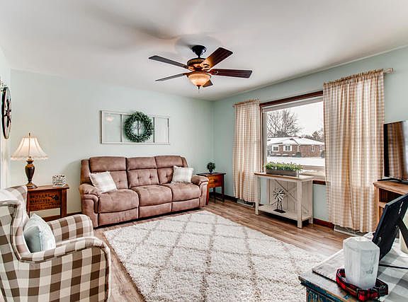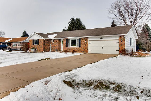 Welcome to this lovingly maintained ranch home in a convenient location and nicely updated in todays trends. Newer wood laminate floors greet you as you enter in to the great room. Flooring carries thru into the kitchen and dining area where you will find abundant cabinetry and counter space with picturesque views of the oversized fenced in yard with mature trees and a large deck. Master bedroom features abundant closet space and its own nicely appointed bath. Newer, neutral carpet in both bedrooms. Oversized two car garage is great for added storage. Full basement awaits your finishing touches and can double the size of this adorable home. Convenient to shopping, schools and I 88, this home will not last!