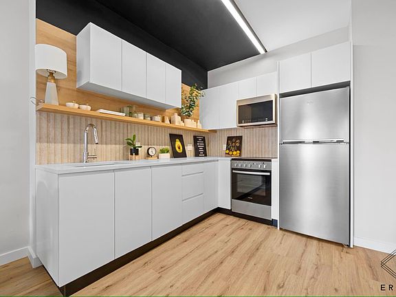 A newly built modern home at 219 Lenox blends sleek fixtures with organic textures while maximizing space and natural light. The open-concept living, dining, and kitchen space features beautiful hardwood floors, gallery-style walls, and floor-to-ceiling windows that allow natural light to flood the home. A private balcony off the living area is perfect for entertaining, sun lounging, urban gardening, and more. The kitchen boasts custom under-lit cabinets, alluring black stone countertops, and high-end stainless steel appliances. The bedroom has a built-in reach-in closet and easy access to a pristine full bathroom with a custom floating vanity, stone slab walls, warm cove lighting, and chic brushed nickel fixtures including a rain showerhead. Additional storage is available with a pair of deep storage closets and an in-unit washer/dryer. Residents of 219 Lenox can indulge in a host of luxurious amenities designed to enhance their daily lives. The private residents' lounge offers a perfect spot for hosting gatherings or socializing with friends and neighbors, while the state-of-the-art fitness center is equipped with high-end weight training and cardio equipment. Pet owners will appreciate the beautifully landscaped dog run, and the welcoming lobby features a virtual doorman system and package room. Other amenities at 219 Lenox include on-site parking, bicycle storage, and a sunbathing terrace. Take in panoramic views of Brooklyn and the Manhattan skyline, or enjoy a quiet spot to work from home in the Sky Lounge. The stunning rooftop deck is the building's crown jewel, featuring grilling stations, an outdoor kitchen, and dining and lounge furniture. Located on a beautiful tree-lined street on the border of Flatbush and Prospect Lefferts Gardens, 219 Lenox is perfectly situated to take advantage of everything this vibrant area has to offer. The shops along Flatbush Avenue and Rogers Avenue offer a range of retail and dining options, while the expansive green spaces of nearby Prospect Park provide an oasis in the heart of the city. The 2, 5, B and Q subway lines are just a few blocks away, offering easy access to the rest of the city. Pets are welcome at 219 Lenox, making it the perfect place to call home for all members of the family.