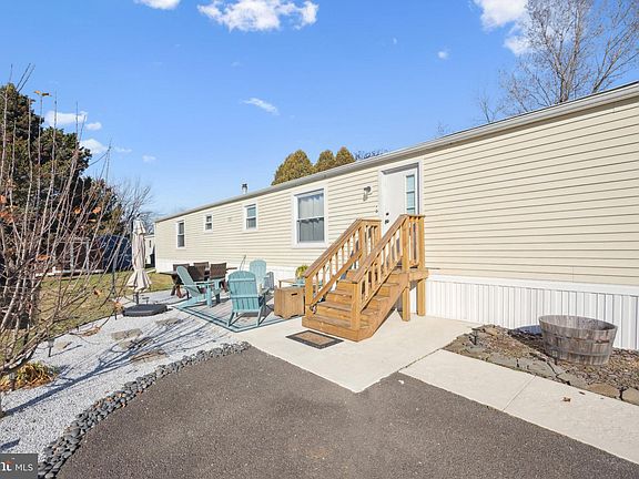 This immaculate property offers so many improvements and priced extremely competitively. Owners have removed above ground oil tank & unit and replaced with new natural gas furnace, ductwork, vent covers and central air. Additional gas line run to 5 burner stove. Garbage disposal and water line for frig added as well as a new deep sink. A small closet where previous furnace was located added for optimum storage. Some exterior improvements include 2023 roof coating to code, new pressure treated wood steps, entire exterior repainted with new skirting, verizon line for internet, doorbell wire for camera if desired. Beautiful new landscaping with river rock edging and seating area on extended patio for guests. The center island in the kitchen can stay and greatly increases the functionality of the space. land rent fee includes water & sewer. This unit is light, bright and oh so welcoming. We invite you to shop and compare this excellent value today! Washer/ dryer negotiable