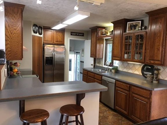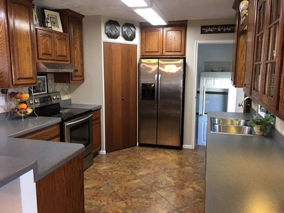 2250 +/- Sq. ft. home with 4 bedrooms 1 & 1/2 baths, wired with wi-fi lighting throughout. 3 bedrooms on main floor with large living room, electric fireplace, gourmet kitchen with stainless steel appliances, counter seating, and refinished hardwood floors. Lower level has large remodeled family room with electric fire place, bonus sleeping room, and office. Large backyard with mature landscaping, established trees and beautiful flowerbeds, very private backyard concrete patio and Trex decking. Patio includes propane fire pit for those 'chilly" nights. Newer siding, windows, furnace & AC. Insulated double car garage with large concrete driveway for extra parking.