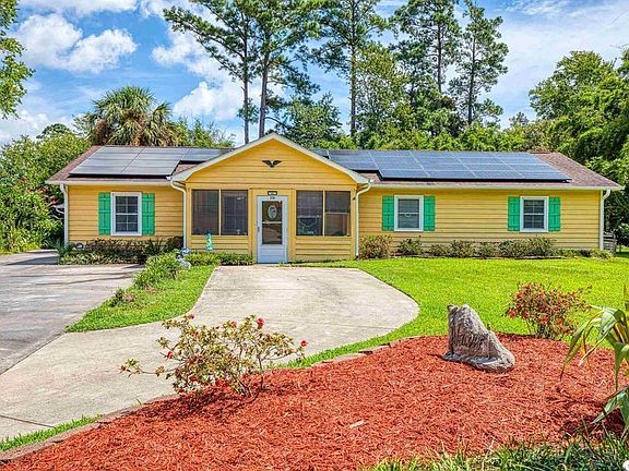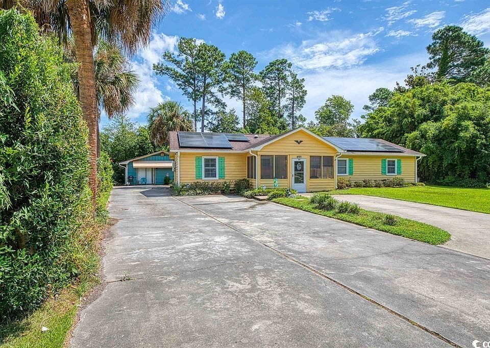Come check out 219 Misty Pine Drive with a detached mother in law suite or rental opportunity, located approximately one mile from Surfside Beach! This home sits on a quiet cul-de-sac providing two large driveways in the front of the home and additional driveway on the right side of the home leading to a concrete pad perfect for storing your RV, Boat, Golf Cart and any other toys you may have, a large fenced in backyard, two storage sheds, a screened in front porch, a back concrete patio and back deck! On the outside of this home, you will find solar panels, gutters, 2 HVAC units, motion sensor lights, and an additional storage facility off of the back of the home where the water heater is located. You will be excited to tour the additional home on the property that is currently used as a short-term rental. It has a full kitchen, full bathroom, one bedroom, a living/dining area, washer and dryer room and its own fenced in yard and patio! Moving into the home, you will enter through a screened in porch where you can enjoy your morning coffee before gathering your belongings and heading to the beach. Entering the home, you are greeted by a foyer and a coat closet, on the left you will walk through double doors to a room that is currently a bedroom, however this room can be used as a formal dining room, office or study, the opportunities are endless for your needs! The kitchen features granite countertops, upgraded kitchen cabinets, a double oven, stainless steel appliances and ample storage. Off of the kitchen is one of the ensuites in the home and the bathroom has an upgraded walk-in shower with dual shower heads. Walking back through the kitchen you will enjoy the family room and dining area combination perfect for enjoying the company of others. The beautiful brick, wood burning fireplace and vaulted ceilings with wood beams boasts old charm that brings warmth and comfort. Off of the family room is the laundry room and additional storage room with access to the attic. Walking to the right side of the house, down the hallway is a guest bathroom, hall closet and three additional bedrooms. One of the three additional bedrooms features a second ensuite and doors leading to the bright oversized Carolina Room, perfect for enjoying games and game day with your friends and family. The owners have maximized the space by adding multiple beds to the rooms. You don’t want to miss the opportunity to own this rare home!! All measurements are estimated and should be verified by buyer(s). Buyer agent/Buyer to verify all HOA information and square footage.