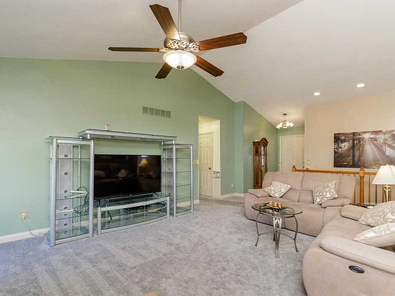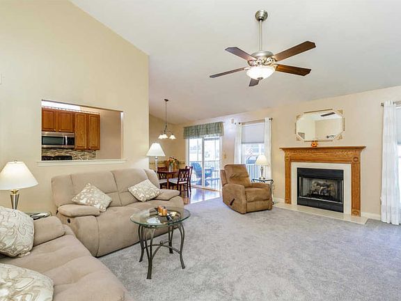 This former display home has double pane Pella thermal tilt-in windows throughout '17; Kitchen w 42 in cabinets, crescent window, stainless microwave, new dishwasher, custom tile backsplash, & newer flooring; Master bedroom suite has double sink, separate shower & tub, & walk-in closet; Hall bath has newer stand up shower; & large basement with egress window. Other features: covered screened porch, gas grill, gas log fireplace wood mantle & marble hearth, vaulted ceiling in great room & kitchen, newer ceiling fan & light fixtures, open stairwell with wood railing to basement, hardwood floor entry, main floor laundry, newer carpeting '17, architectural roof '15, new gutters with 4in downspouts & gutter guards, leaded glass front storm door, 6 panel doors, water softener & filter, gazebo converted to storage, new blinds throughout, sliding glass door with built-in blinds, recessed lighting, garage door opener w battery backup, nice patio, & professionally landscaped yard.