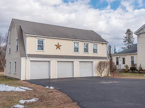 SEE VIDEO TOUR: A prized historic gem with legal in law/rental apartment, artist workshop and over 2 acres of private, park-like grounds with stone patio & pond. Charactor & charm are endless in this one of a kind beauty. Arched doorways, large fireplace, floor to ceiling bay windows, crown molding, huge eat in kitchen, storage pantry, 3 full baths and room to add 1st floor bedroom. Detached 3 car garage has additional 1,485 s.f. apartment above,, 2 - 3 bedrooms and screened porch, with separate utilities- perfect for in-laws or rental income. Large out building serves as storage barn for all your toys with separate heated work shop wired for 220v. Truly unique property with so much to offer. Easy access to MA Pike. Effortless blending of old world charm with upscale contemporary upgrades.