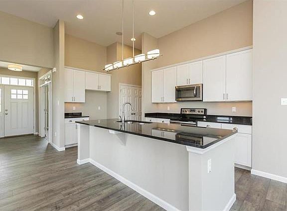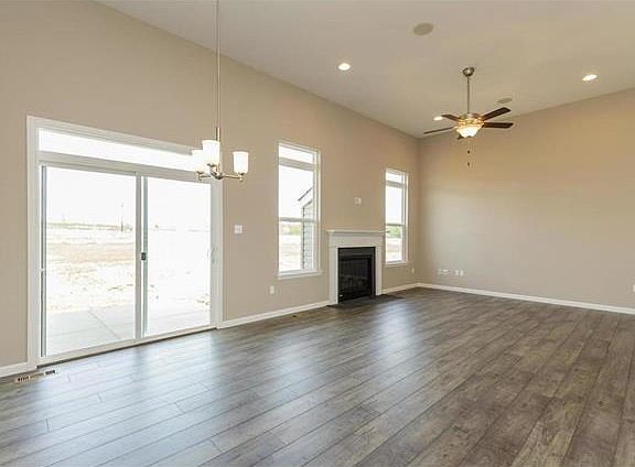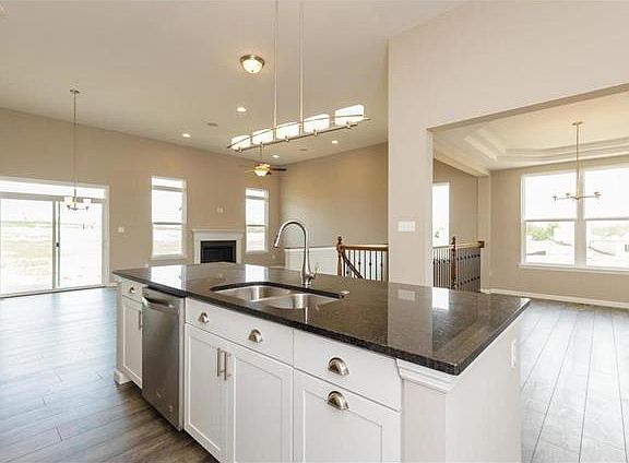 Open, elegant and well-designed best describes this 1,929 square foot ranch by Payne Family Homes. This impressive 3 bedroom (bedroom 3 shown as an office), 2 bath home offers todays most desired finishes. Features include 9 foot ceilings with 12 foot in the Great Room-Kitchen-Café, transom windows in the Great Room, laminate wood flooring throughout the main living areas, fireplace with marble surround, a bright Kitchen with white cabinets, large island with breakfast bar, granite countertops, stainless steel appliances, 42 inch cabinets, under cabinet lighting, double tray ceiling in the Dining Room, wrought iron spindles at the open stairs, custom wall paint, wave bowls in the bathrooms, raised height vanities in the Master bath, coffered ceiling in the Master bedroom, Jeld wen Low E windows, a tall foundation pour, humidifier, garage door opener, keyless garage entry, rough in bath and more. The exterior is elegant with brick, low maintenance vinyl siding, shake accent in the gable, architectural shingles, a covered porch with vinyl railing, garage coach lights, a 3 car tandem garage, an upgraded front door, full sod, professional landscaping and a 12 x 12 covered patio. This exciting new homes community in O’Fallon is located just minutes from shopping, dining, schools, recreation, parks, golf and easy access to Highways 364 and 40.