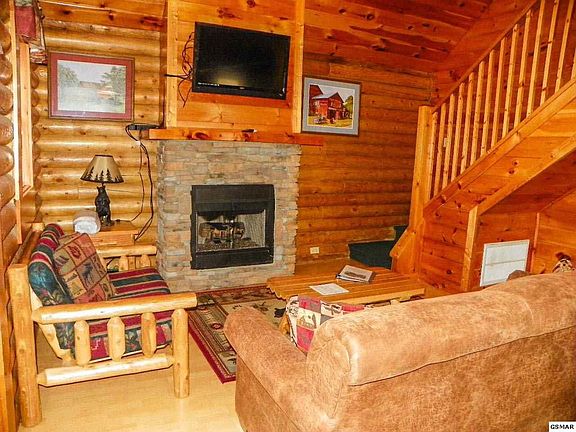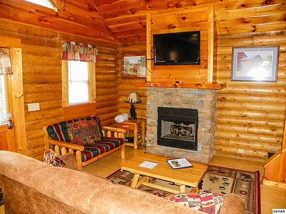 Conveniently located off the Parkway in Pigeon Forge, across from Hatfield & McCoy's and WonderWorks, this cute 2 Bedroom/ 2 Bath cabin has an open loft used as a 2nd bedroom and a Hot tub privately accessed from the Master bedroom. Furnished, decorated and equipped this cabin could make a great overnight rental! (NOTE: The Hot tub is new as of March 2017. The Little Bear Statue and Jug on top of the cabinet do not convey with sale. All bed linens and towels stay with the cabin. There is a one time $200.00 HOA transfer fee.)