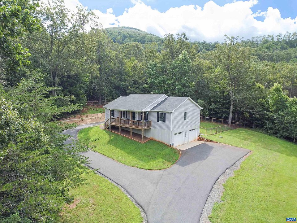 Privacy and serenity abound at this immaculately maintained, extremely well-built home. At the end of a mostly paved driveway you'll find this 3 bed, 3 bath 2018 ranch. Sited on just under 6ac, the land itself is beautiful and secluded, boasting walking trails throughout. The yard directly behind the house is fully fenced and mostly flat. Inside, you'll find luxury vinyl plank floors throughout and a fantastic, flowing floor plan. The custom fireplace and hearth offer quick heating for the living area. The eat-in kitchen is very generous and is equipped with stainless appliances. The huge primary bedroom offers a large ensuite bathroom and walk-in closet. The other two bedrooms share a jack-and-jill full bath with dual vanities. Off of the kitchen, enjoy the large deck perfect for lounging or entertaining. The finished basement with 9ft ceilings features another possible living room area and an extra bonus room could easily be a home office or gym. The oversized 2-car garage offers extra space for a possible workshop. Whole house generator and firefly fiber internet round out this near perfect home. Located less than 25 minutes to Charlottesville and VERY close to vineyards, breweries, etc. You don't want to miss this one!