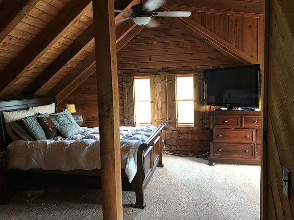 One of the first things you will notice when pulling up to this property is the solar powered gate and the tree lined driveway leading to the log cabin built in 1990. The oversized 1+ acre lot is completely fenced and the landscaping is sure to please with mature trees, gravel drive, 24''x26'' shop and covered carport. The views from the front porch are stunning. Once inside you will see the custom kitchen cabinetry, butcher block island, granite countertops, and newer stainless steel appliances. The 2 bedrooms on the main level are perfect for any age and convenient to the full bath. Upstairs is the Master Bedroom and bath complete with a walk in closet that has a private deck that is accessible through the French doors. The master bedroom has newer carpet but can be easily removed to expose the hardwoods. Upstairs also features a loft space perfect for any office, crafting or perhaps game room for kids. Massive back deck that would be perfect for a large family cookout or gathering of any kind. The basement has been fully finished and includes a 4th bedroom, huge open area and a small room that could easily be converted into a half bath or extra closet. The washer and dryer and perfectly tucked away behind sliding barn doors. The cabin was restained a beautiful dark stain in 2017 and a new hot water heater and HVAC system were installed in 2017. *All information taken from seller/tax information. Buyer/Buyer''s agent to verify all information* Owner/Agent