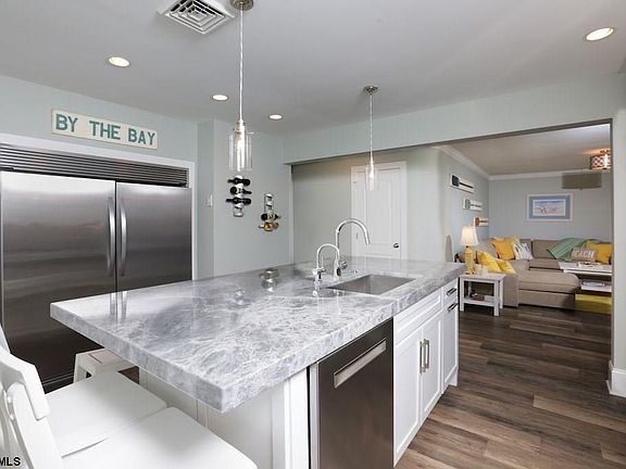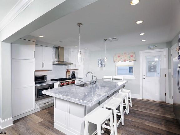 This stylish Longport beach house was designed for soaking up summer! The large, bright living room opens to the custom kitchen, featuring a Wolf range, full fridge and full freezer, and extra-large granite island with plenty of seating for guests. 3BD plus a bonus/guest room, 2.5 updated baths, hardwood floors, and beautiful beachy finishes throughout. Grill and entertain in the large, fenced yard with paver patio - or walk to any of the amazing Marina District hot spots. Off-street parking for 2 cars, new bike shed, large outdoor shower. Too many bells and whistles to list - this bungalow is truly a must-see.