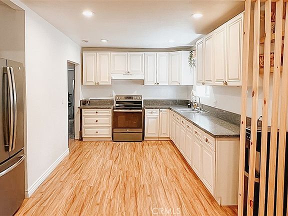 Don’t miss out on this awesome upgraded 3-bedroom home with a back guest house. This property has many upgrades including but not limited to; newer windows, newer doors, upgraded flooring throughout, an open kitchen area with newer cabinets & upgraded counter tops, updated & upgraded bathroom with newer vanity, tile tub/shower area, newer paint, upgraded fireplace in the dining area, and upgraded recesses lighting throughout. The main house features 3 bedrooms & 1 bathroom. The back guest house features a living room, kitchen area, 1 bedroom, 1 bathroom, and a walk-in closet area. The backyard features a kid's jungle gym area, an inground trampoline, and 2 spacious storage sheds. This property is centrally located near shopping centers, restaurants, and has easy freeway access. Come check this one out...