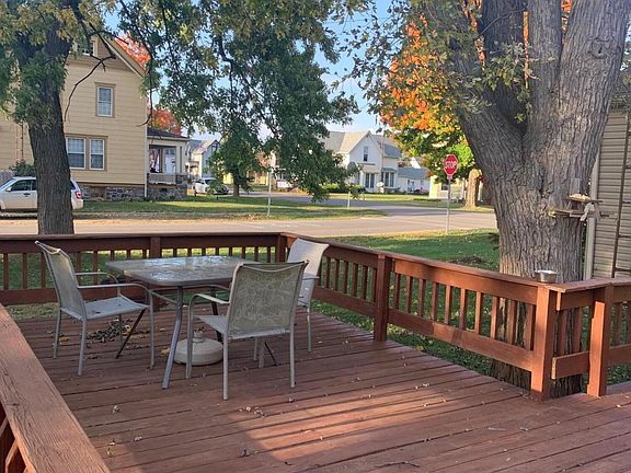 Cute corner lot walking distance to school and the park! This home offers character with built-in cabinets and some original wood floors. Enjoy your oversized living room complete with 3 picture windows and a wood insert! This 2-3 bedroom also offers a dining room and an eat-in kitchen. Enjoy parades from the front porch or sunsets from the rear deck!
