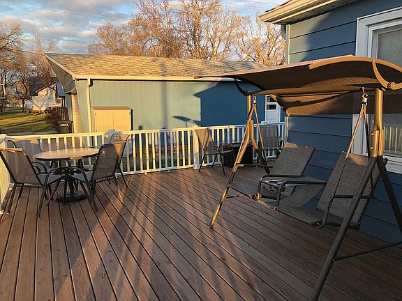 The home is 1,351 sq. ft. on the main level and 1,351 sq. ft. in the basement. 50% of the basement is finished. The unfinished portion houses the laundry and a large storage area. Entrance off of Vail Ave. goes into kitchen. Entrance off of Main St. goes into small entryway with closet and coat hooks. Metal Roof New 2016 Painted Exterior 2017 New Gutters 2017 Remodeled Family Room in Basement 2018 Remodeled Basement Bathroom 2016 Deck added 2020 Electrical Outlets added on deck 2020 Landscaping redone 2020-2021 Air Conditioner New 2017 New Front Door 2020 Thermostat replaced 2016 Upstairs toilet replaced 2014 Kitchen and dining room light fixtures replaced 2017 Windows Replaced 2007 New Stove 2017 New Washer & Dryer 2017 New Water Heater 2021 Young Apple tree that produces Small Raspberry patch Large detached garage (can fit 2 cars, a golf cart, and much more)