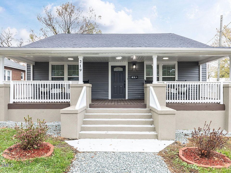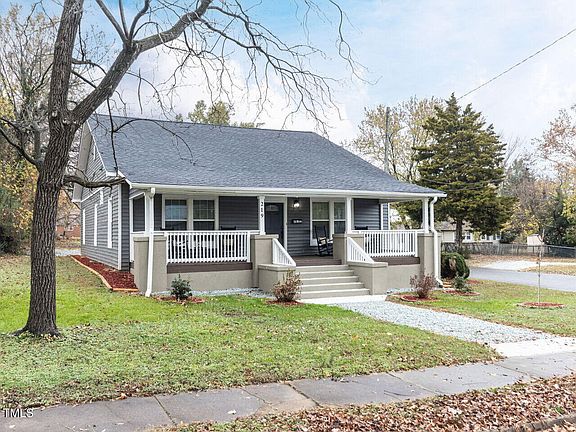 Beautifully renovated ranch home on large flat homesite! Fabulous rocking chair front porch. Bright & open floorplan with new luxury vinyl plank floors in the living areas. New light fixtures. Spacious living room is open to kitchen with stainless steel appliances including electric range, dishwasher, microwave & refrigerator. Granite countertops & granite topped island for food prep & dining. Primary suite has new carpet, walk-in closet & private bathroom with walk-in tile shower. 3 additional bedrooms share hall bath with large tile shower. Separate laundry room. Deck overlooking backyard & landscaping. Easy maintenance vinyl exterior. Convenient to highways, shopping & dining!