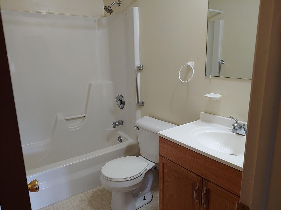 Beautiful lower level one bedroom apartment. Walk-in closet (pictures 18 and 19) in master bedroom plus two closets in the entrance of the unit (pictures 12 and 13). Spacious kitchen with dishwasher. A cozy dining room and a big living room with a small deck (picture 24). Laundry room and storage space inside the building. Parking space, green outdoor areas, and gym. Heating and water included in rent. Great neighbors. Ready to move in! Call for special offer. Renter pays for electricity and cable TV.