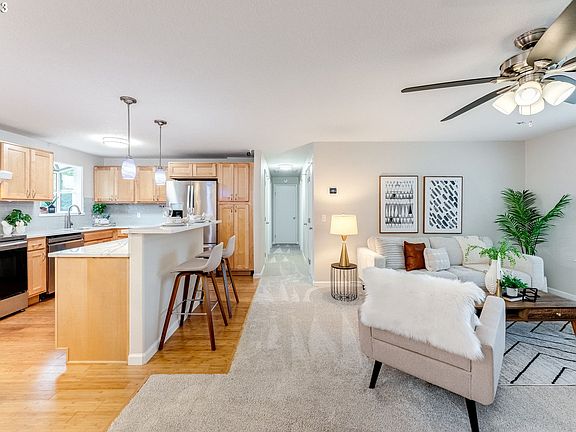 - Features: Dishwasher, Eat Bar, Island, Free Standing Range, Quartz, Wood Floors
