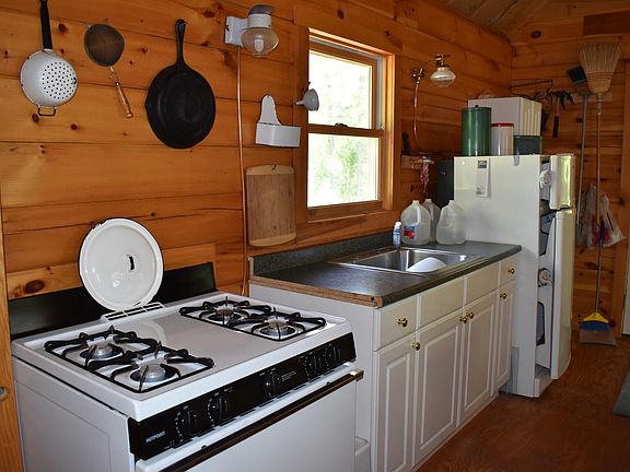 Well Constructed Northeastern Log Cabin on a concrete foundation. 990 feet of frontage on a Brook. Gas lights, range, and refrigerator. Large sleeping loft too. Includes a drill well and a out house. All on 46 acres. Currently in tree growth. Great hunting and recreational area. Hunting Camp?? This is the place.