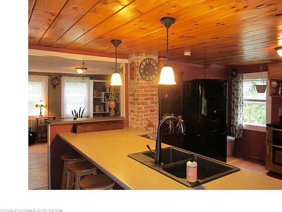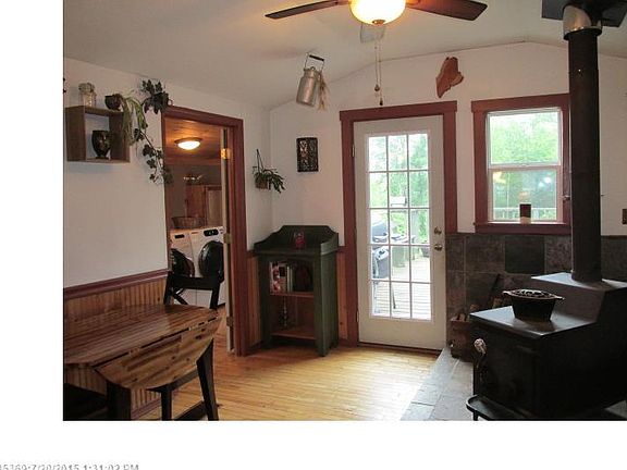 Nicely maintained country house is close to the public schools and town amenities. The updated kitchen with newer appliances is the gathering place in this two bedroom, two bath cape with wood floors. Dining area has wood stove and sliding doors to deck. Wrap around decking and covered porch extends summertime living. There is plenty of room for a garden with back acreage.