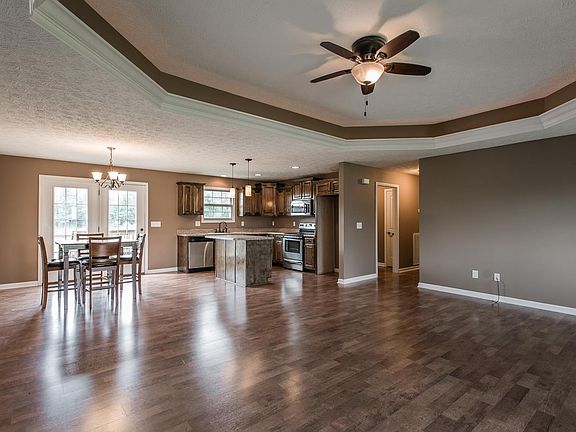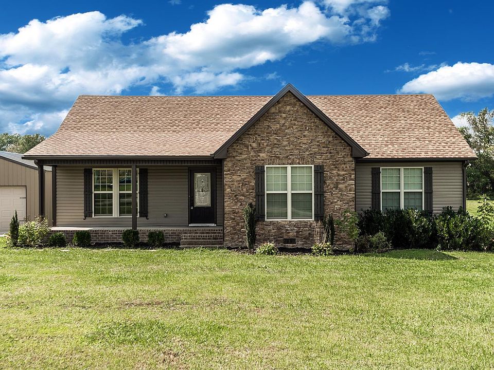 Beautiful one story home only 3 yrs old! Open floor plan, large bedrooms, wood cabinets, recessed and pendant lighting, trey ceilings, stainless appliances, kitchen island, covered porch, large private yard, huge detached garage!
