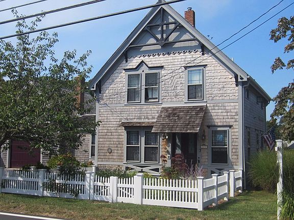 Loation Location! Walk to town,Ball Field, Band Concerts, Fish Pier from this charming antique that combines modern conveniences of today with all the original charm of 1888 This historic home was originally owned by Arthur Edwards, Shavings subject of the 1918 novel by noted Chatham author Joseph C Lincoln. When you walk through the picket fence and enter the frosted glass front doors you feel the charm of pine floors, turned stairs,cozy nooks, interesting details, all lovingly maintained.Cedar roof, gas heat, shed, nice garden, all abutting Chatham Conservation in rear offering privacy when entertaining on the wonderful rear deck. Garage with good storage above.