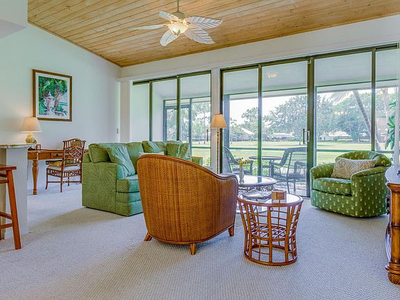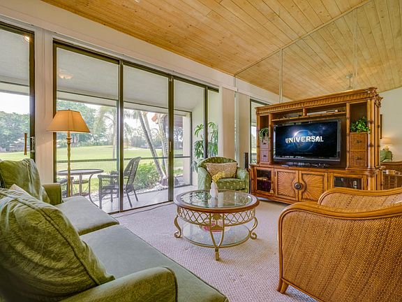 Enjoy gorgeous sunrises over peaceful golf course views from this bright & spacious, 3BR/3BA open-plan townhome with a garage and many updates, located on the 11th & 12th fairways of the Fazio course and close to the community pool in the highly sought-after Patio Homes subdivision of PGA National. Desirable features include soaring, vaulted wood ceilings, wall-to-wall double sliding glass doors, updated gourmet kitchen with granite countertops and spacious cabinets, all updated bathrooms, a spacious master suite with large windows overlooking the golf course, and a downstairs bedroom with a full bath and sliding glass door access to the large front courtyard. The expansive covered patio is screened in and has tiled flooring laid on the diagonal and beautiful views of the golf course.