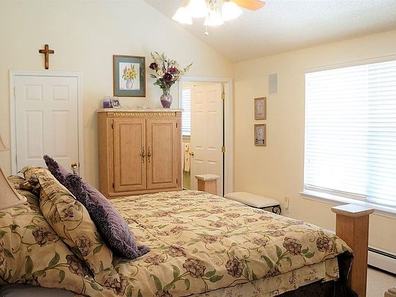 Immaculate 3 bedroom, 2 bath Rancher overlooking the lake with beautiful hardwood flooring in the living room, dining room & kitchen. Bedrooms have carpet. Kitchen has SS appliances, upgraded cabinets, granite and breakfast bar with bar stools. Master bedroom has large walk-in closet & Bathfitters (approx. cost $7K). Home also has a sitting room which is located off the dining room with direct views of the lake. Home is wired for surround sound & has Bose speakers. Baseboard HWH & AC is 2yrs old. Outside features irrigation, a large concrete patio with two retractable awnings. HOA fee is $400/yr. This home has been very well maintained (and since 03' has only been used 6 months out of the year).