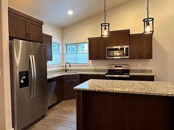 New townhome with upgrades! Two bedrooms plus office. Spacious open kitchen/front room/dining area with vaulted ceilings and electric fireplace. Master bedroom has vaulted ceilings, large walk in closet and full bathroom with double sinks. Washer and dryer included. Double car garage and back deck the overlooks the golf course. This house is definitively one to check out, request a showing today! Offered by Main Street Property Management, LLC Small pets may be considered under 15 lbs. Tenant pays for utilities which are Electric, water and garbage service. No smoking.