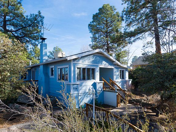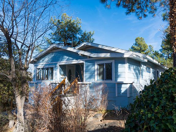 Adorable bungalow style home on Prescott's desirable Park Ave with a taste of charm, boulders and pine trees. Enjoy views from just about every living space in the home. Lots of natural light abounds. Kitchen was updated with custom cabinetry. Electric and plumbing updated as well. Current office and smaller music room could be smaller potential guest rooms. Off street parking accessed from back alley. Enjoy out door living and city views on the Gazebo style covered deck! Make this your new place to call home!